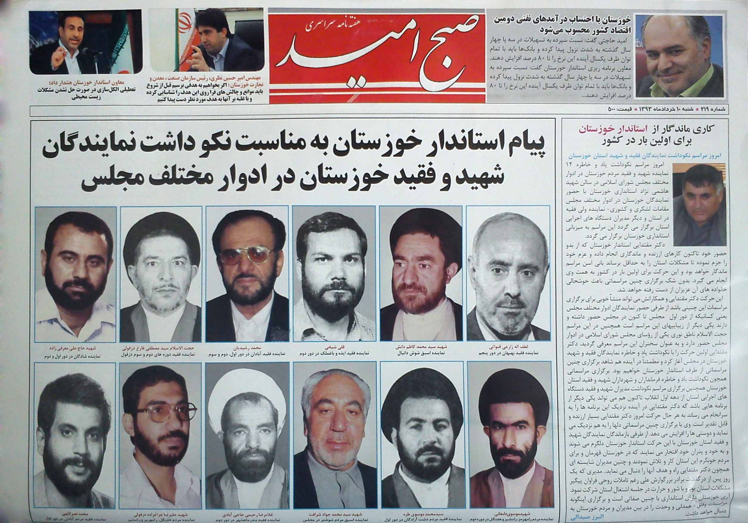 تصاویری از هفته نامه ی صبح امید که خبر خبر نکوداشت نمایندگان شهید و فقید استان خوزستان را پوشش داده است.